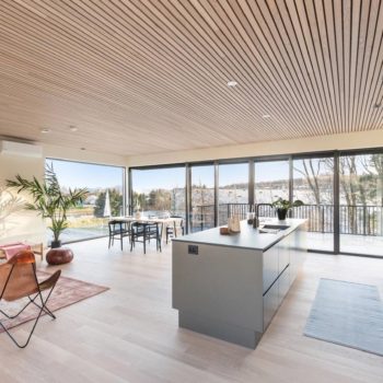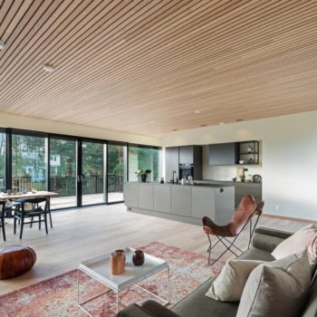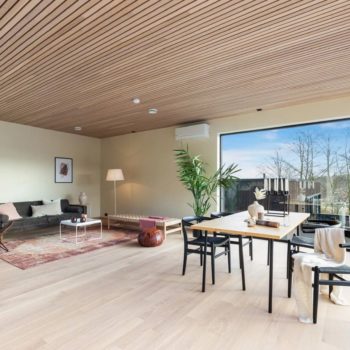Настроение интерьера этого дома в норвежском Ставангере – спокойствие, простор и свобода. В его основе – умелое сочетание нейтральных светлых оттенков и натурального дерева, четкие линии, лаконичная и функциональная мебель и точно расставленные декоративные акценты. Ничего лишнего, ничто не отвлекает от спокойного созерцания великолепного пейзажа за огромными панорамными окнами, которые словно растворяются на пути воздуха и света. Теплый оттенок натурального дубового паркета создает ощущение золотистого песка на берегу моря. Чистый и прозрачный интерьер, в котором легко и комфортно.