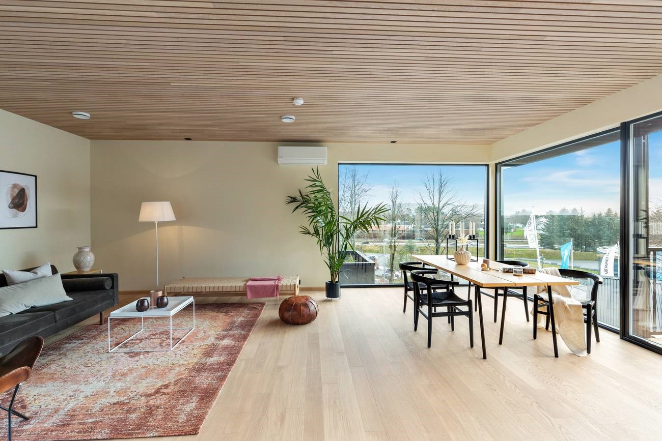 Настроение интерьера этого дома в норвежском Ставангере – спокойствие, простор и свобода. В его основе – умелое сочетание нейтральных светлых оттенков и натурального дерева, четкие линии, лаконичная и функциональная мебель и точно расставленные декоративные акценты. Ничего лишнего, ничто не отвлекает от спокойного созерцания великолепного пейзажа за огромными панорамными окнами, которые словно растворяются на пути воздуха и света. Теплый оттенок натурального дубового паркета создает ощущение золотистого песка на берегу моря. Чистый и прозрачный интерьер, в котором легко и комфортно.