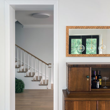 – Определенный аскетизм, рациональное потребление и взвешивание на необходимость каждого элемента сделали создание этого интерьера похожим на прохождение занимательного квеста. Работая в непривычной для себя стилистике, в доме на классической основе, с массой элементов мебели, которые требовалось вписать в общую канву, нам удалось создать современный интерьер, который радует владельцев.