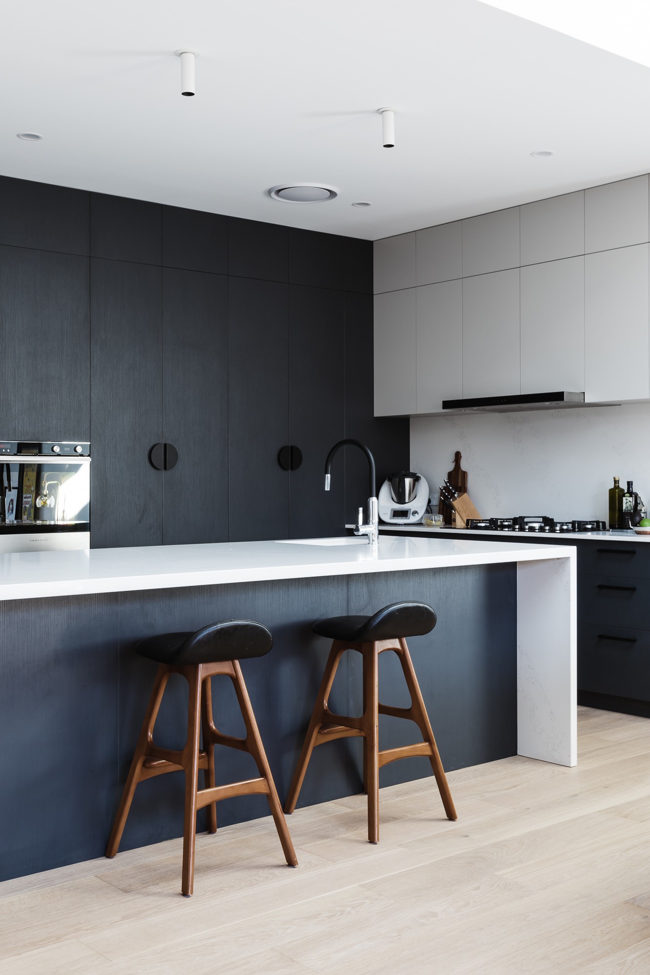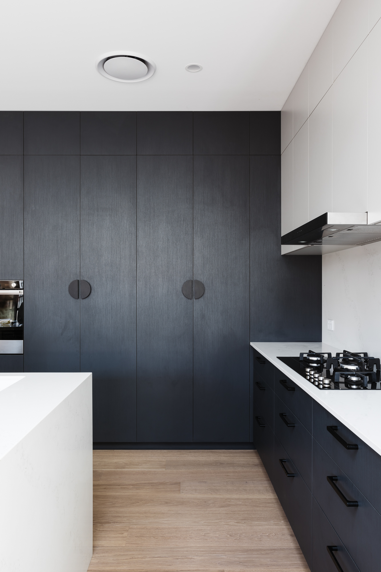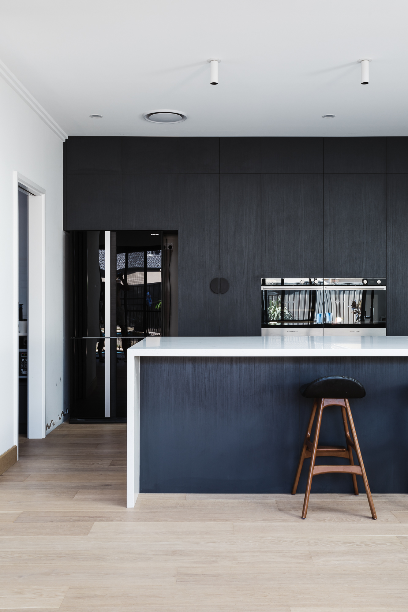 99-Poynter-Drive-Duncraig_web-44Удивительно гармоничный интерьер от нашего австралийского партнера Woodpecker Flooring. Все построено на игре контрастов – цвета, материалов, стилей, освещения. Холодный камень – и натуральное дерево. Белые, дающие прохладу стены – и естественный теплый оттенок дубового паркета, который смягчает черно-белый контраст в отделке кухни. Строгая, лаконичная кухонная зона – и эклектичная, комфортная зона гостиной.