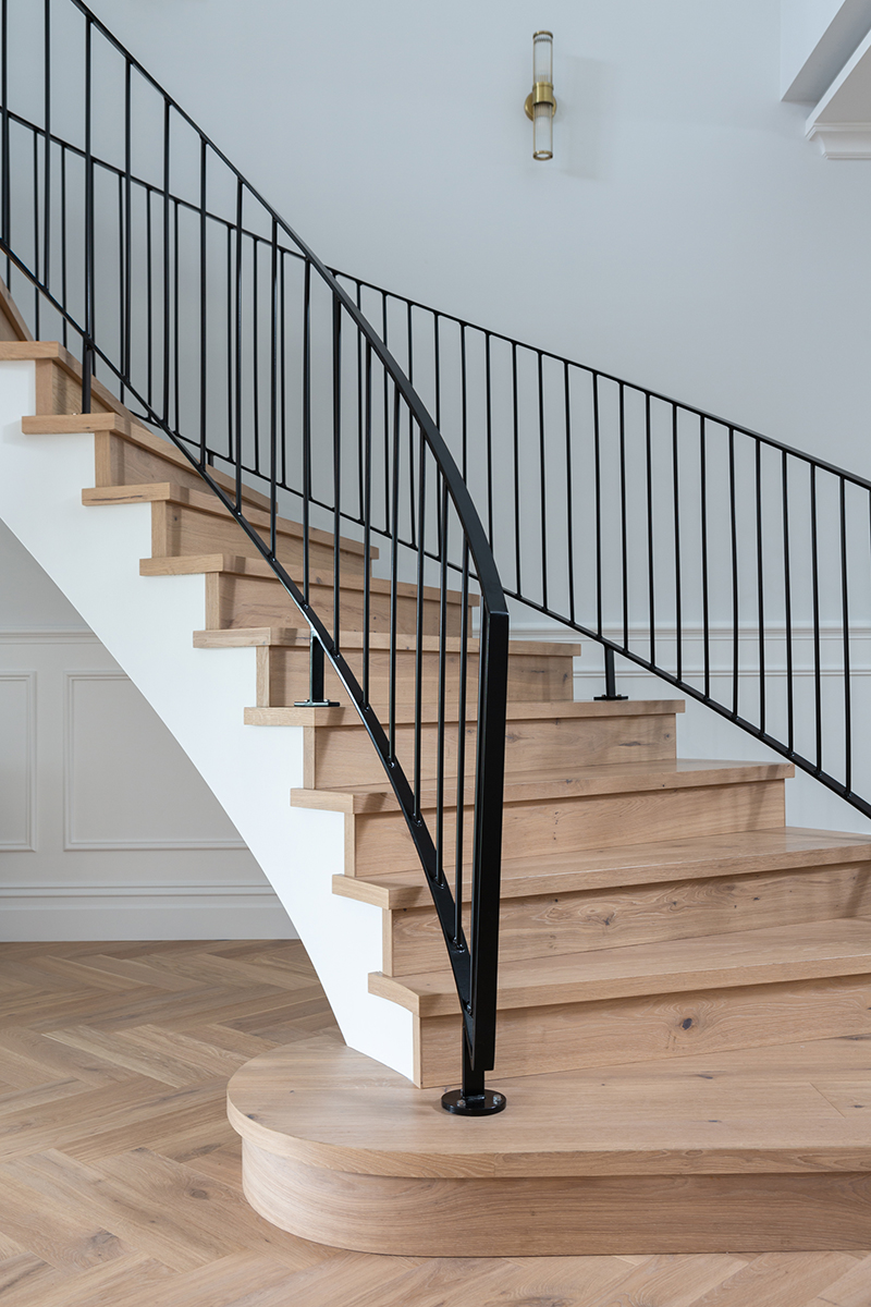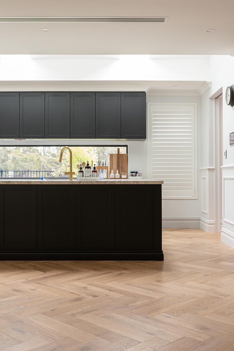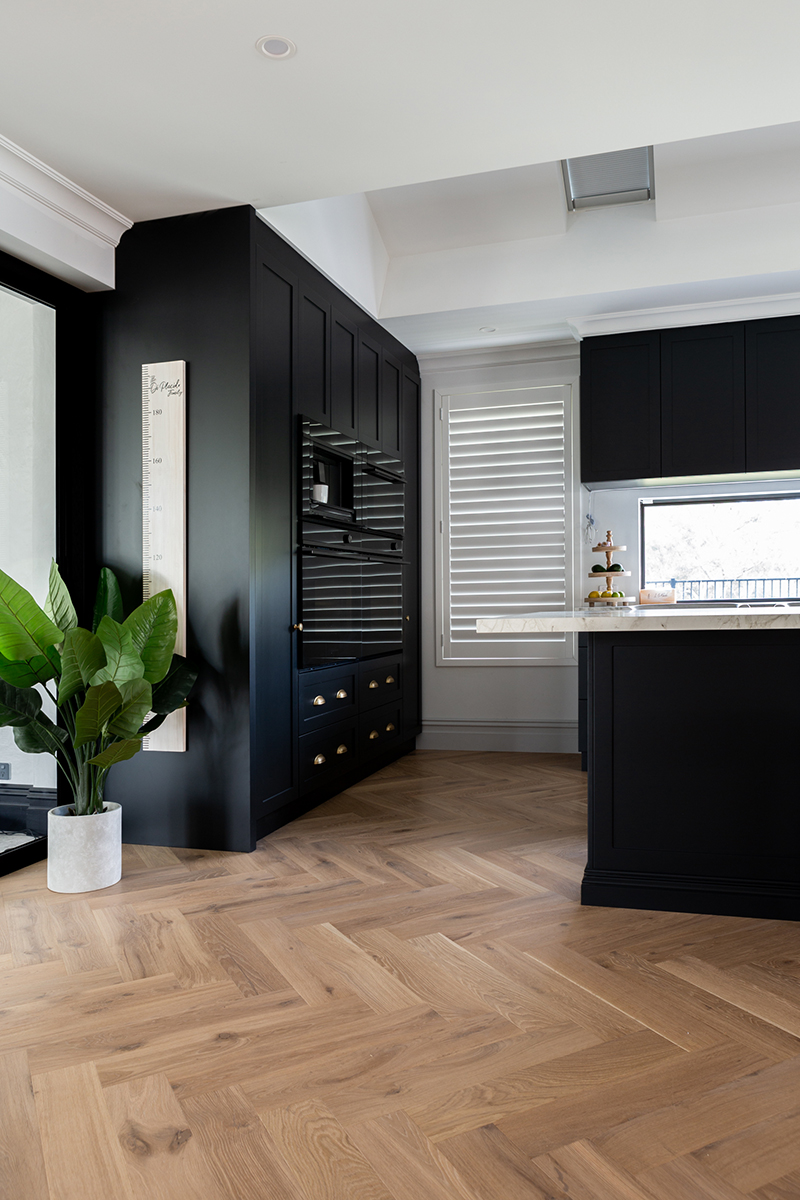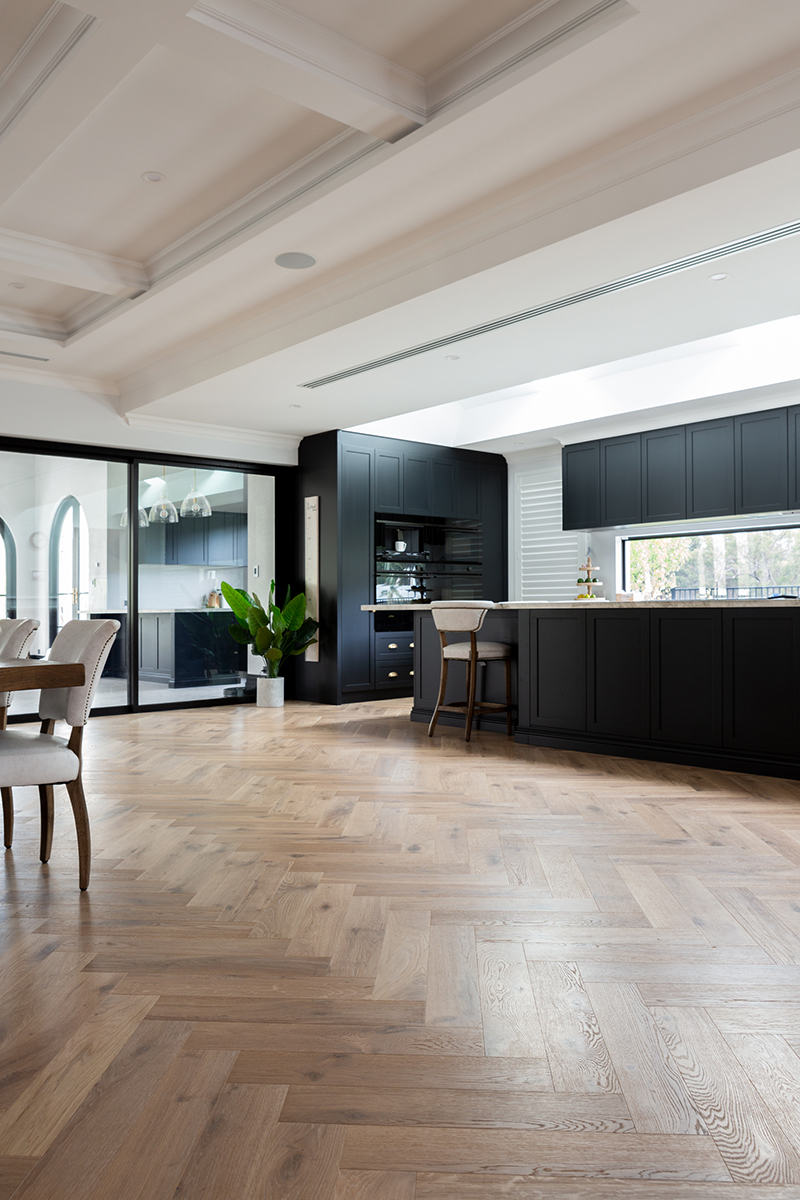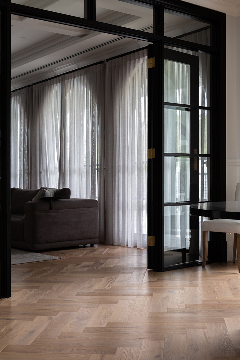 4-Coswick-oak-T&G-tavern-GingerСовременный минималистичный интерьер частного дома в городе Перте в Западной Австралии. Функциональная мебель, минимум предметов и ненавязчивый декор аккуратно обрамлены элементами современной классики – от плавных линий элегантной лестницы и молдингов на стенах до английской елки на полу. Сочный имбирный оттенок паркета смягчает графичный контраст черного и белого в интерьере и создает атмосферу обжитого дома – просторного и спокойного. Напольное покрытие и лестничные ступени – паркет Coswick.