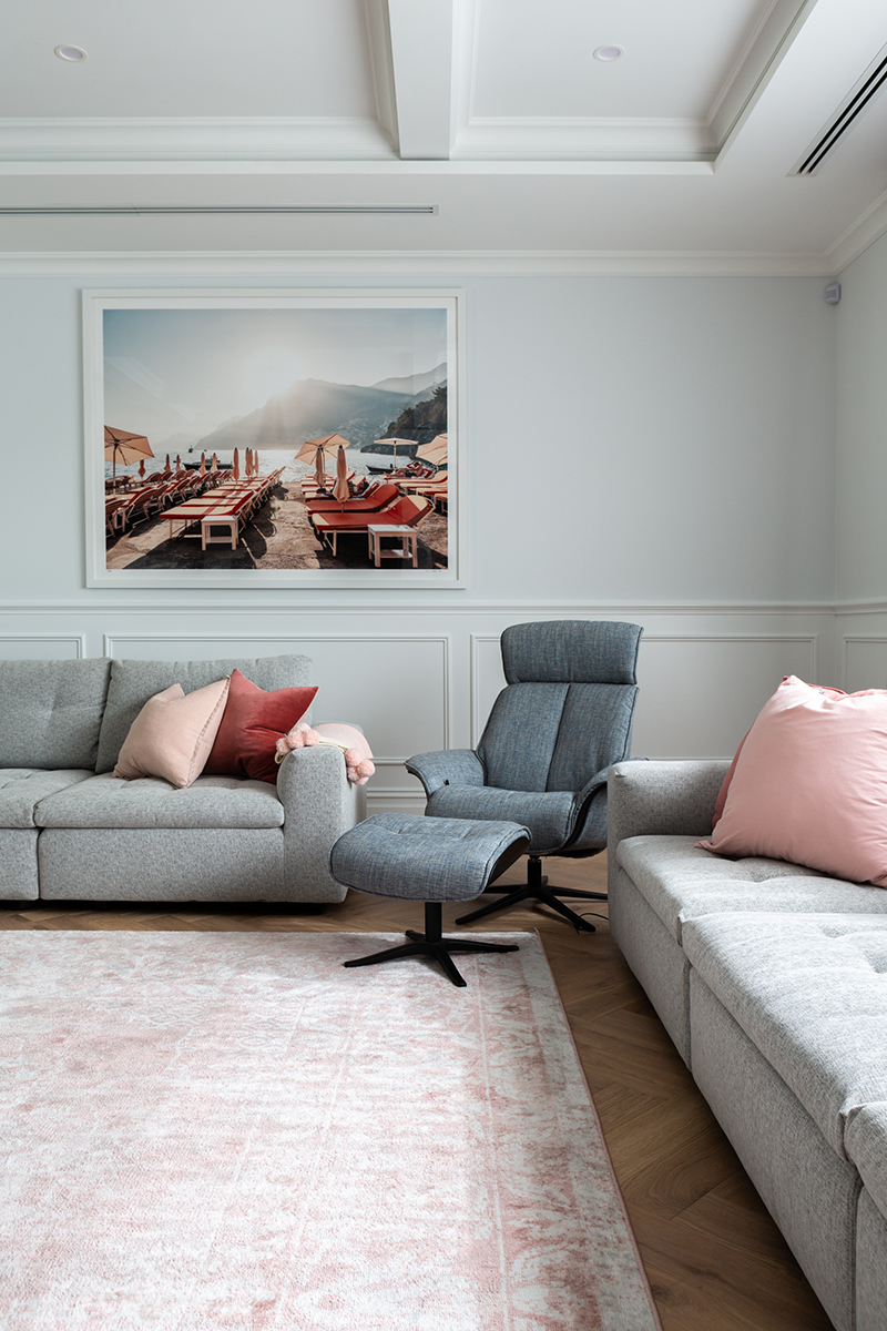 В проекте использован паркет Coswick дуб Имбирный из коллекции Английская елка.
