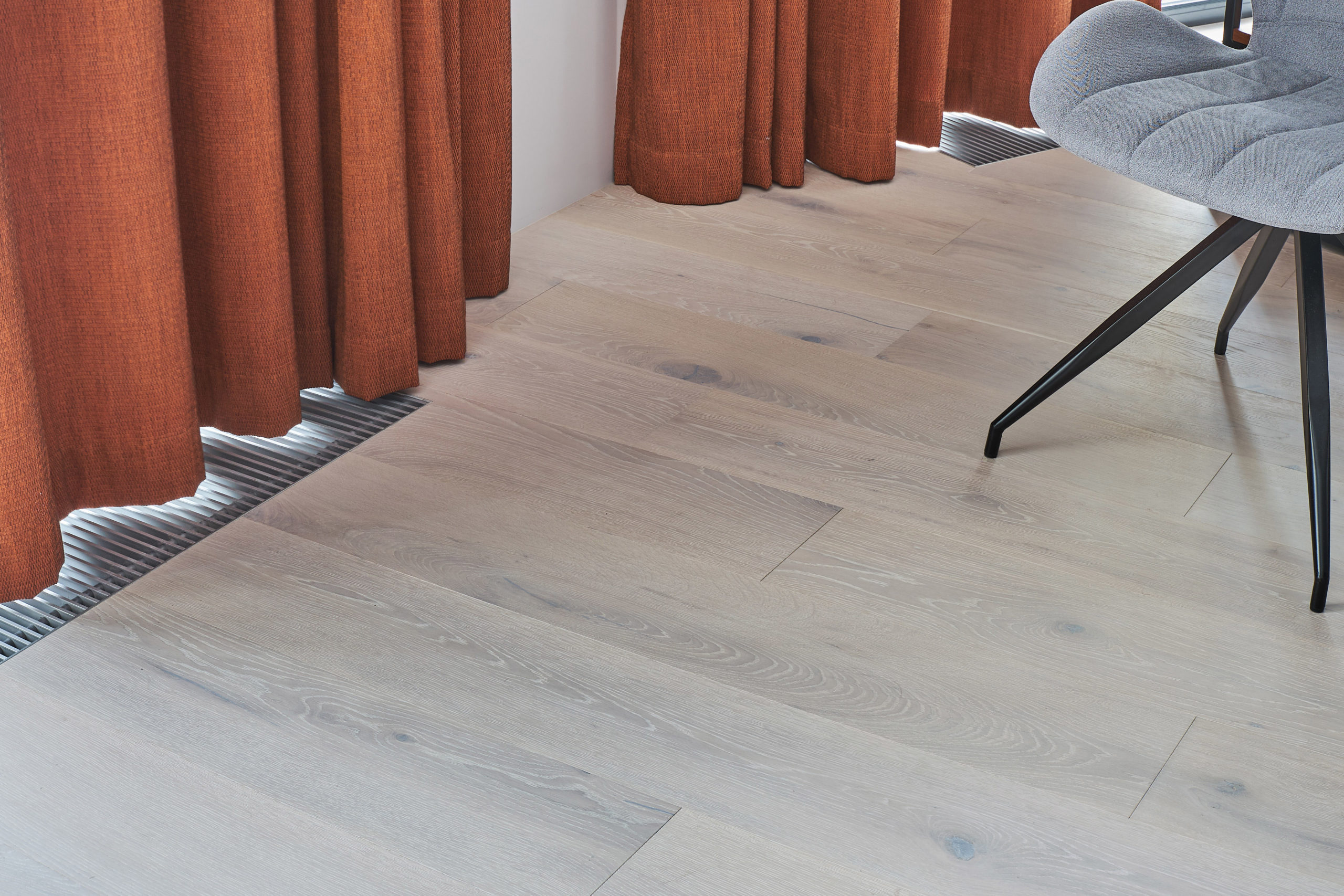 В проекте использована паркетная доска Coswick Дуб Альпийский (Alpine), шелковое масло ультраматовое.