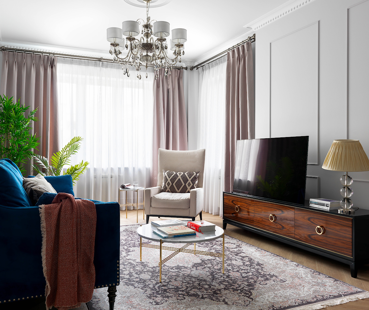 Дизайнер Ирина Налимова спроектировала квартиру для комфортной жизни молодой семьи. Смешала в интерьере стили разных времен и чувственные краски.