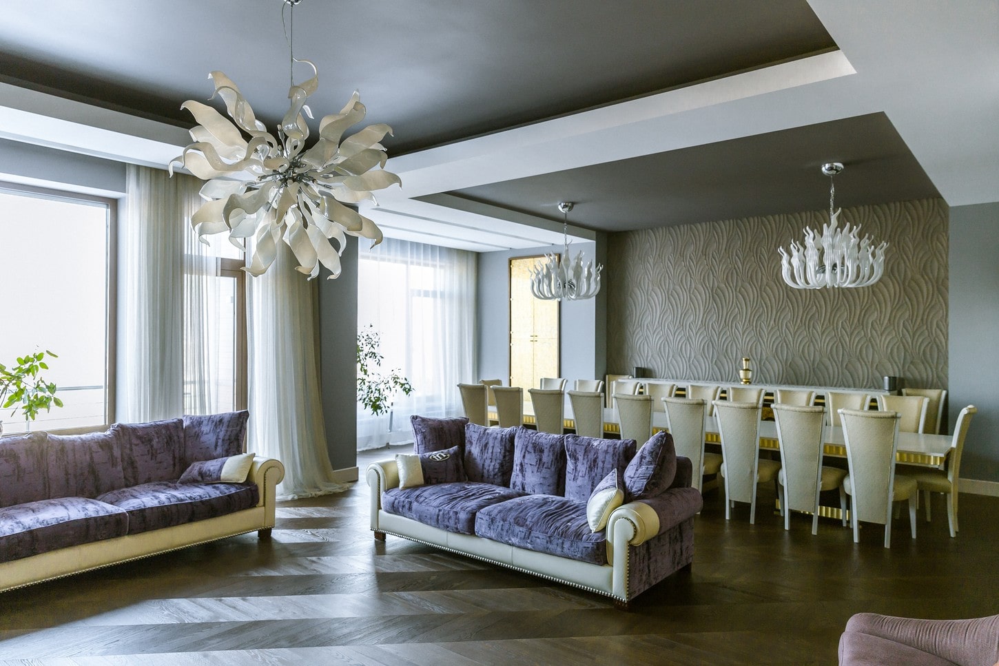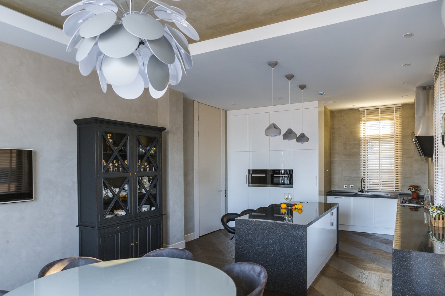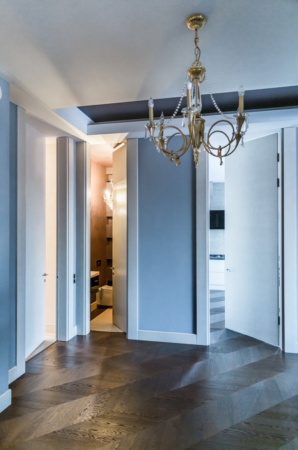 Интерьеры этого двухэтажного дома с подвалом задумывались как минималистичные, но в процессе работы пришлось искать компромисс между предпочтениями членов семьи заказчика. Один из них любит современные минималистические интерьеры, а второй – более классические, с восточными акцентами.