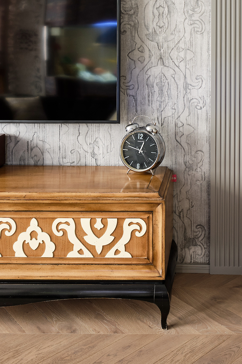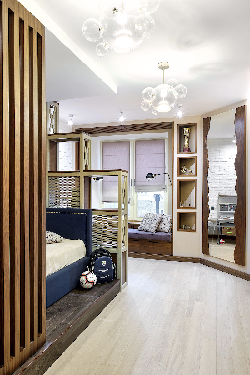 Но главное – это обилие эксклюзивных изделий, которые созданы специально для этого проекта. Они-то и не позволяют интерьеру рассыпаться, уравновешивая и собирая его в единую, особенную историю. Здесь у каждого члена семьи есть своя автономная территория, включающая отдельную спальню и личную гардеробную. Роскошная ванная комната с выходом на балкон – еще одно нестандартное решение. Чем не загородный дом?