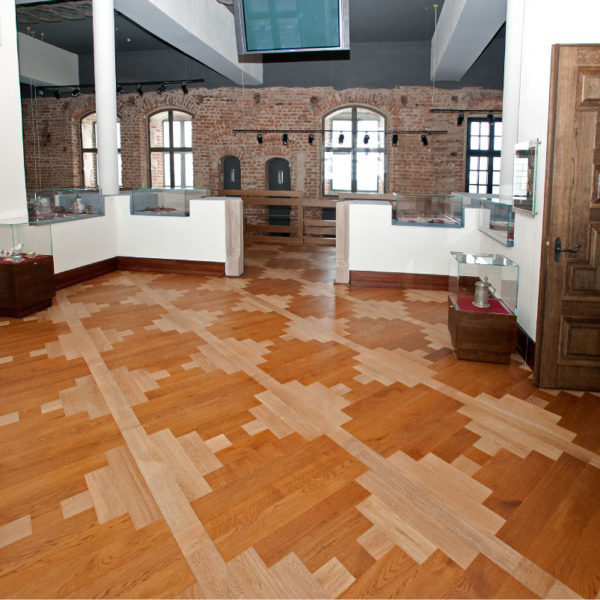 Мирский замок, построенный в 20-х годах XVI века, – один из самых значимых памятников национальной культуры Беларуси, внесенный в Список объектов Всемирного наследия ЮНЕСКО. Участие в реставрации таких важных исторических сооружений – особая ответственность. Для воссоздания оригинального художественного рисунка паркетного пола эпохи Радзивиллов в двух парадных залах старинного замка реставраторы выбрали массивный дубовый паркет Coswick. Необходимо было точно воспроизвести историческую укладку, внешний вид и тонировку покрытия на основе сохранившихся архивных документов. Поэтому паркет для этого проекта изготавливался по специальному заказу. Сложная геометрия помещений со множеством углов требовала особого мастерства установщиков. Каждую планку специалисты компании «Темпла» вручную подрезали на месте, подгоняя под эскиз.