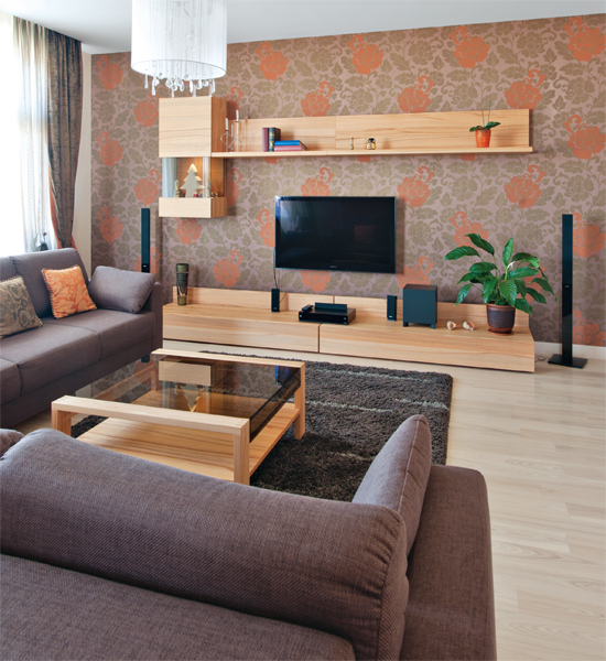 Простые формы, не загромождающие пространство, преобладают и в гостиной. Здесь хозяева по вечерам могут наблюдать за закатом. Мягкие приглушенные цвета успокаивают, фактура материалов создает атмосферу уюта. Отдыхая у телевизора на мягком диване или неспешно беседуя за столом с гостями, хозяева провожают солнце, чтобы на следующий день снова встретить его в своей спальне.