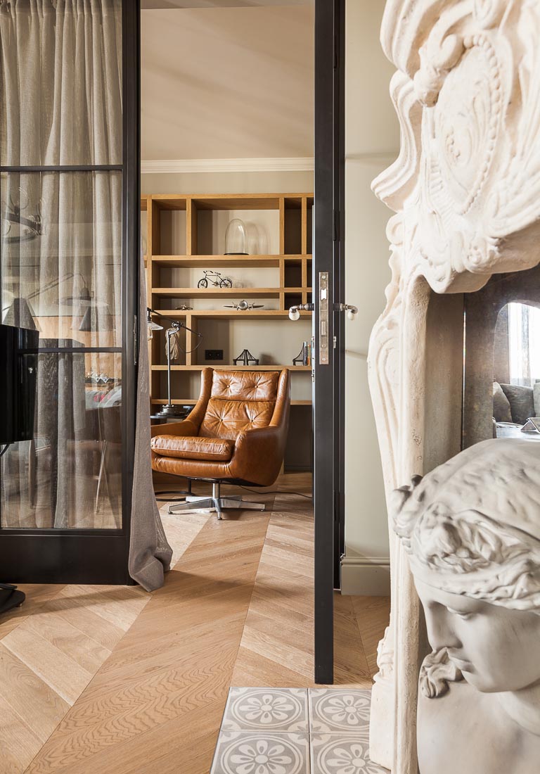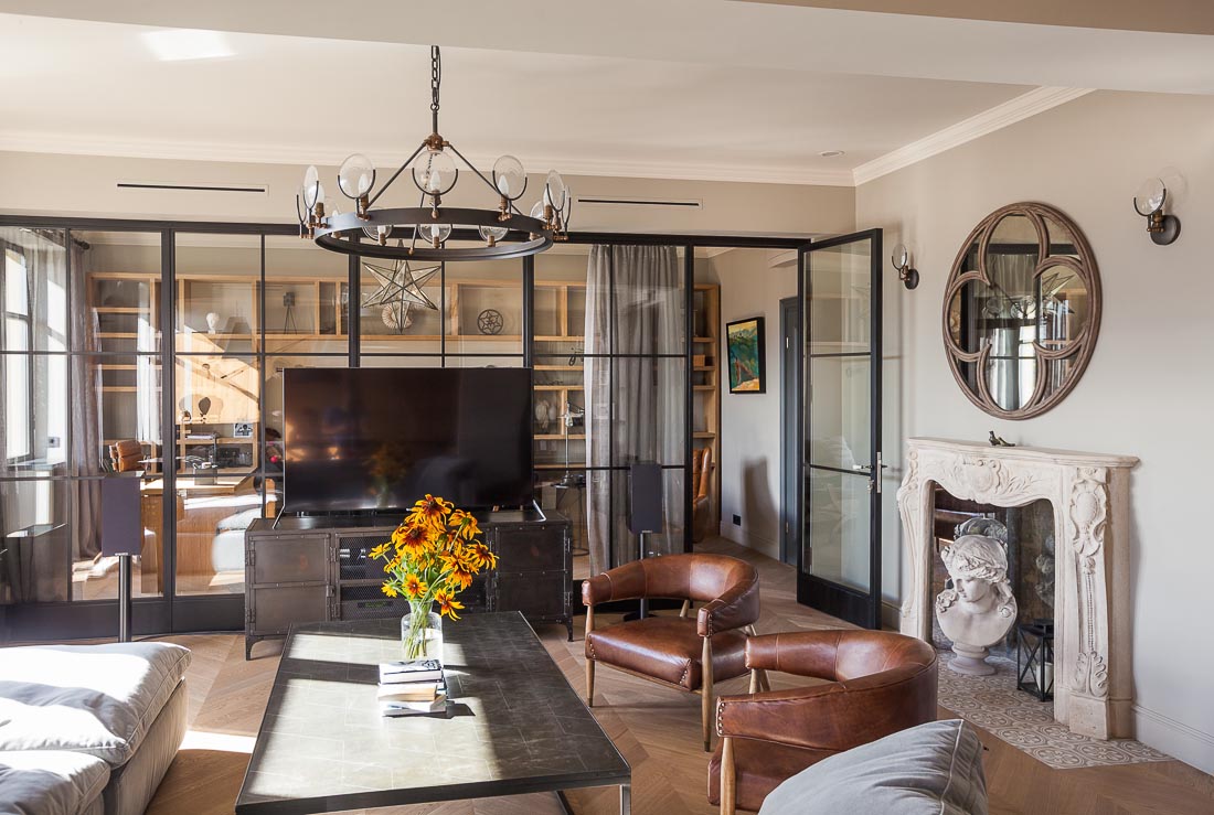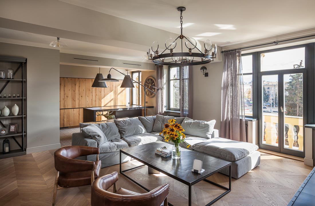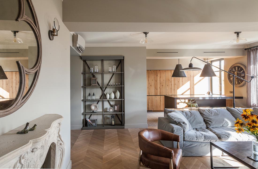 Вместе с заказчиками было принято решение не нарушать изначальную планировку, только несколько перенаправить движение и жизнь в квартире, чтобы подстроить пространство под задачи, поставленные перед нами. Черпая вдохновение в классических интерьерах Голландии и Бельгии, мы постарались перенести эту атмосферу в квартиру в Минске. В итоге получилось удобное и продуманное пространство для жизни семьи из пяти человек.