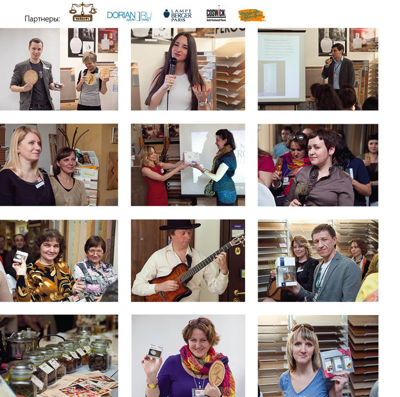 Гости мероприятия получили не только яркие впечатления, но и приятные сюрпризы. Победители викторин были награждены наборами от LampeBergeParis, ароматами для дома и парфюмированными медальонами для гардероба. А компания «Косвик» удивила необычными подарками: подковами на счастье и сертификатами на путешествия. Пять лучших дизайнеров и архитекторов уже в мае 2014 г. посетят Паркетную фабрику «Косвик».
